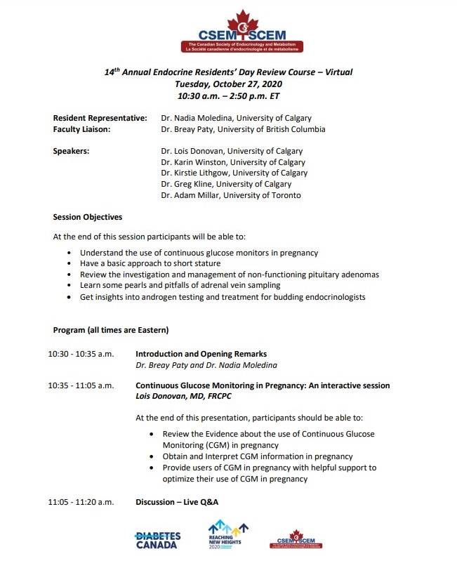 Canadian Endocrine Residents’ Day Review Course 2020 (14th annual)