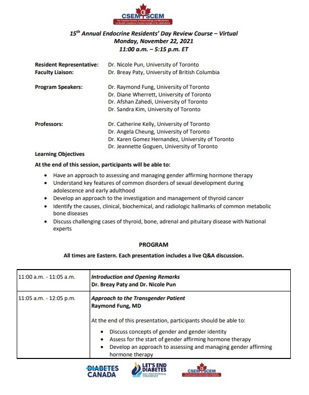 Canadian Endocrine Residents’ Day Review Course 2021 (15th annual)