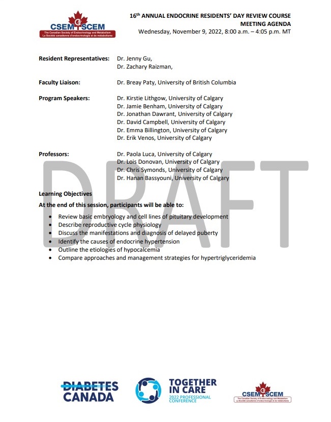 Canadian Endocrine Residents’ Day Review Course 2022 (16th annual)