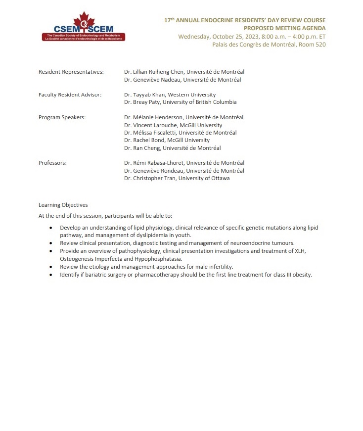 Canadian Endocrine Residents’ Day Review Course 2023 (17th annual)