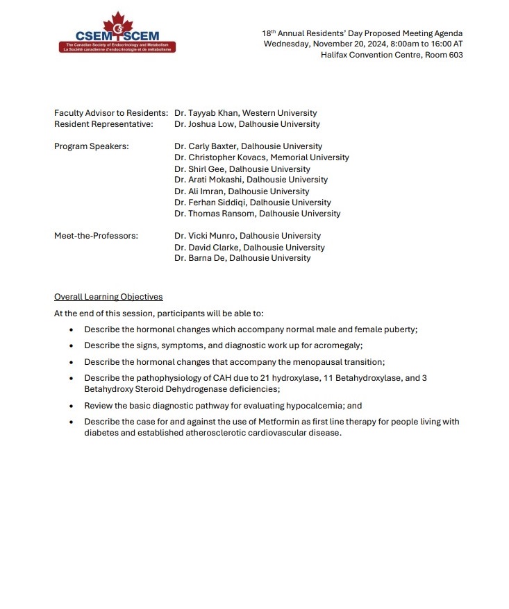 Canadian Endocrine Residents’ Day Review Course 2024 (18th annual)